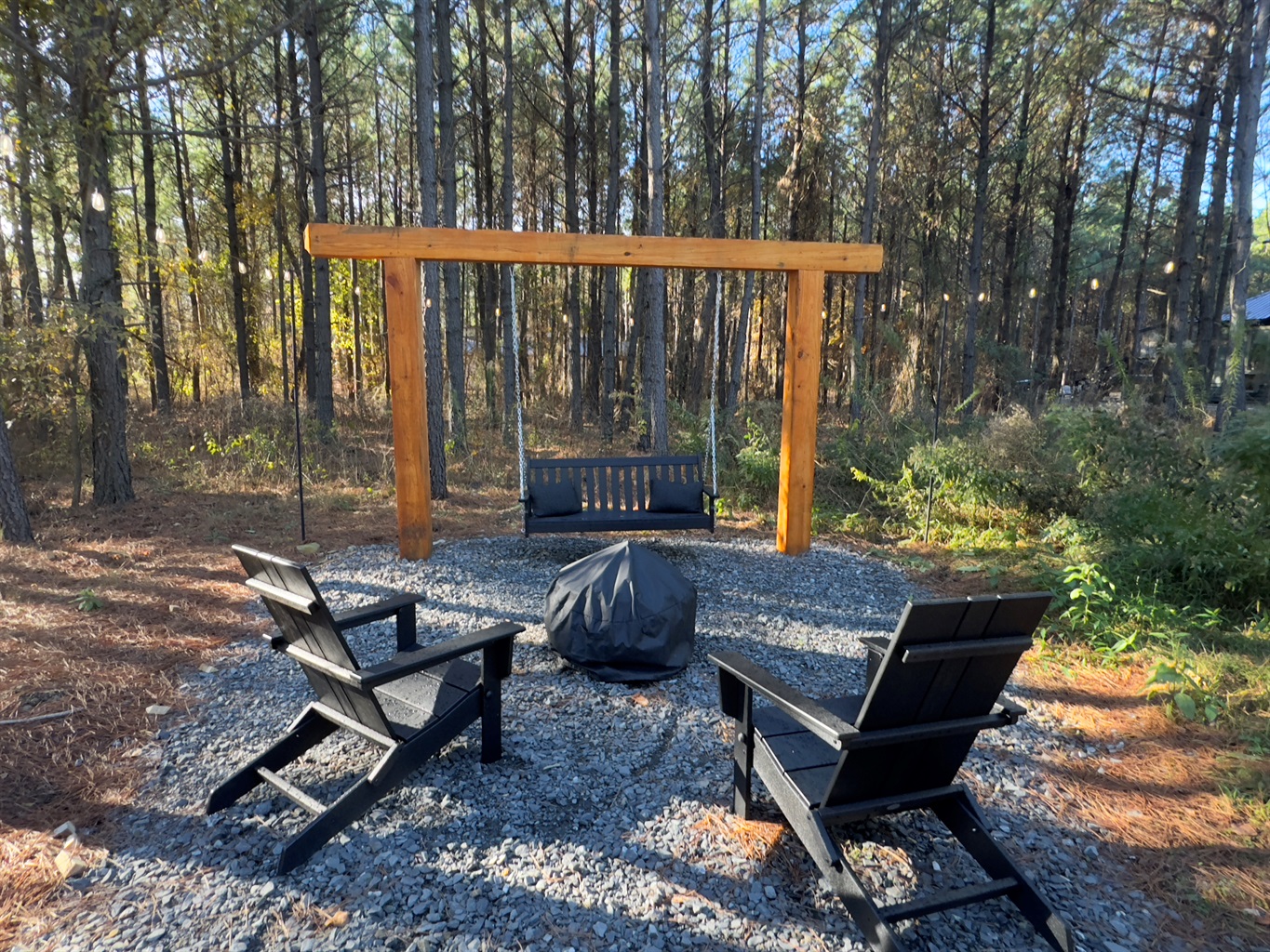 Backyard & Outdoor Living – Step onto the covered back deck with a private hot tub, outdoor fireplace, Smart TV, BBQ grill, and café lighting for ambiance. Play cornhole, enjoy a fire pit with a complimentary s’mores kit, or simply soak in the surrounding nature.