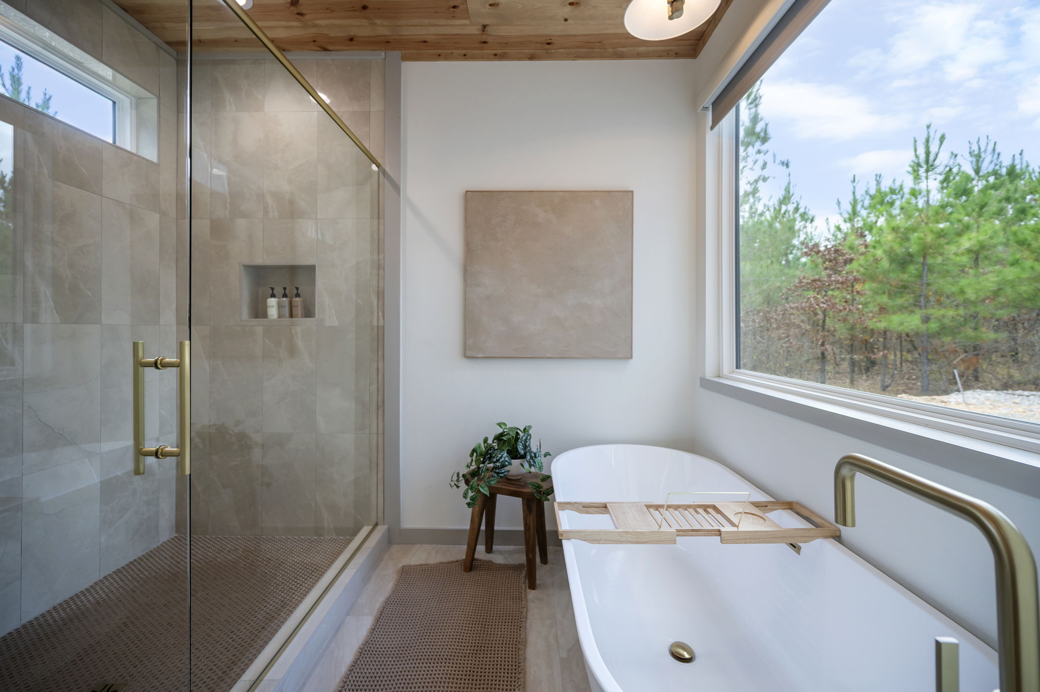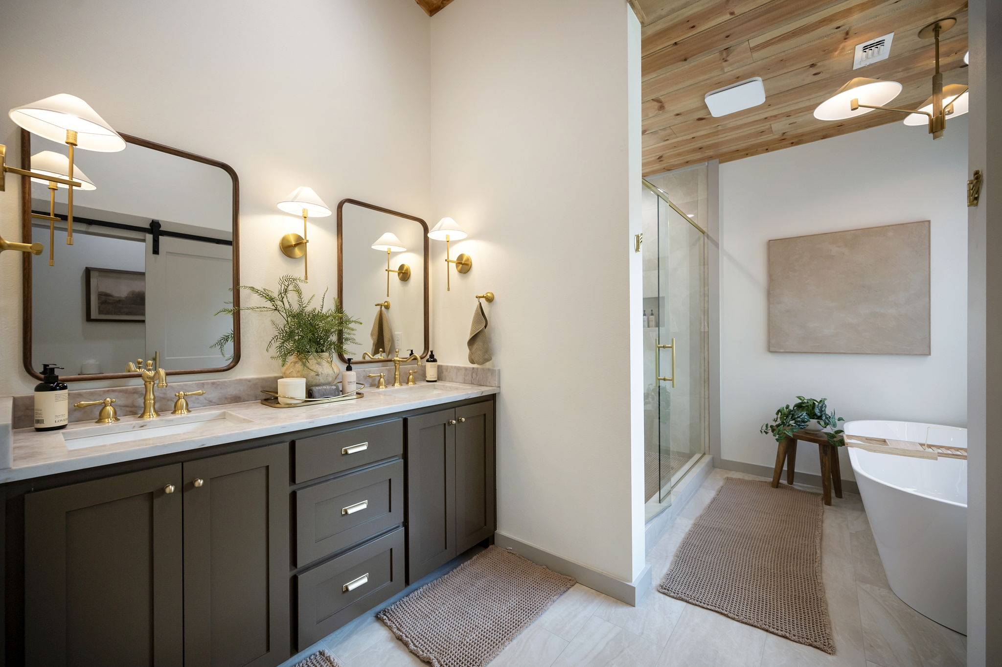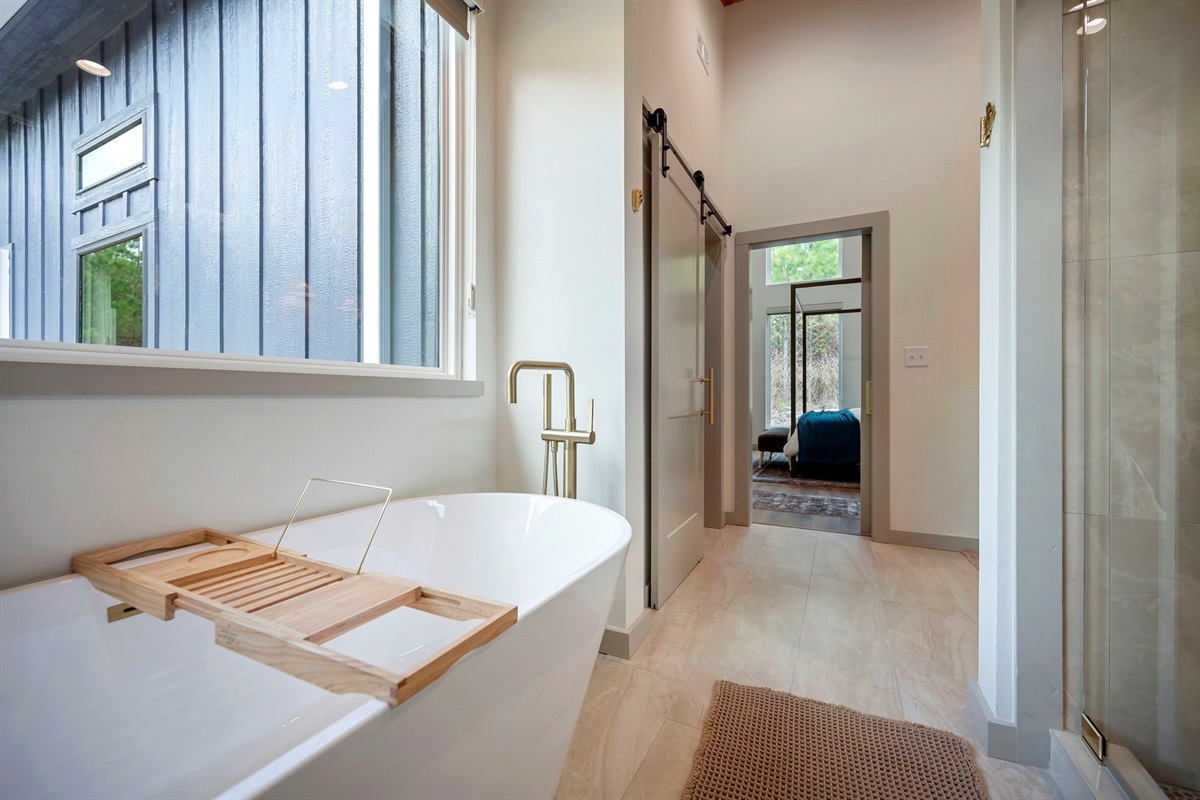 A spa-inspired bathroom offers ultimate relaxation after a day of adventure. Soak in the deep tub or refresh under the rainfall shower for a true retreat experience.