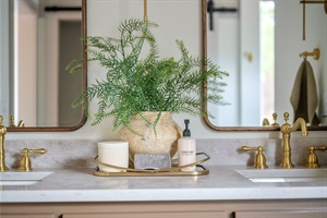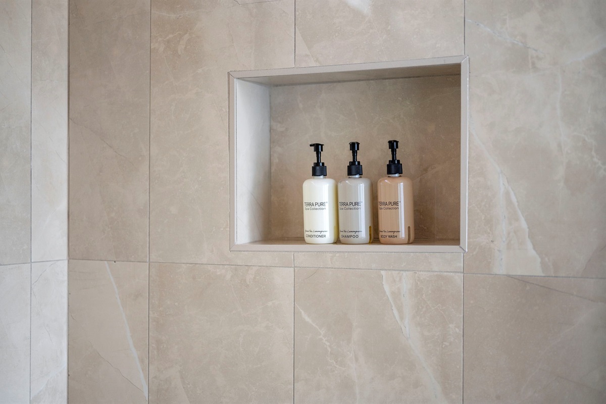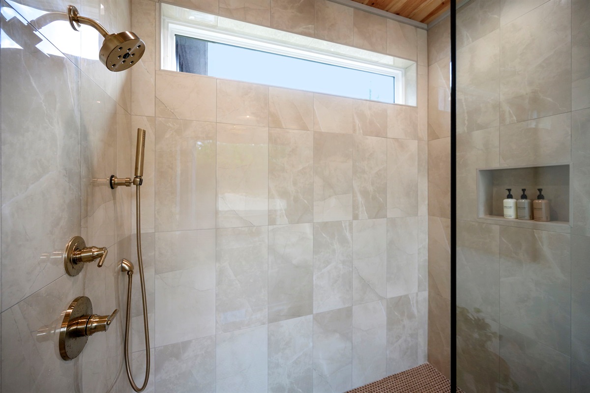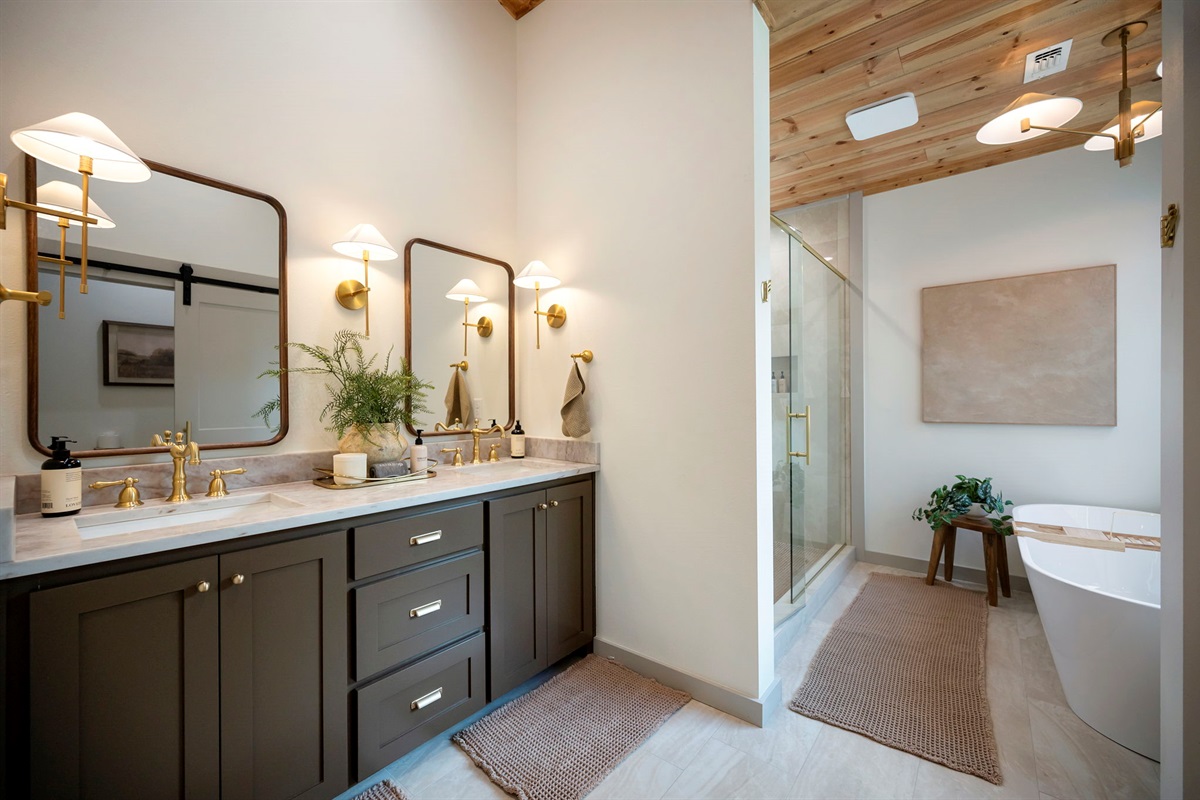 A spa-inspired bathroom offers ultimate relaxation after a day of adventure. Soak in the deep tub or refresh under the rainfall shower for a true retreat experience.
