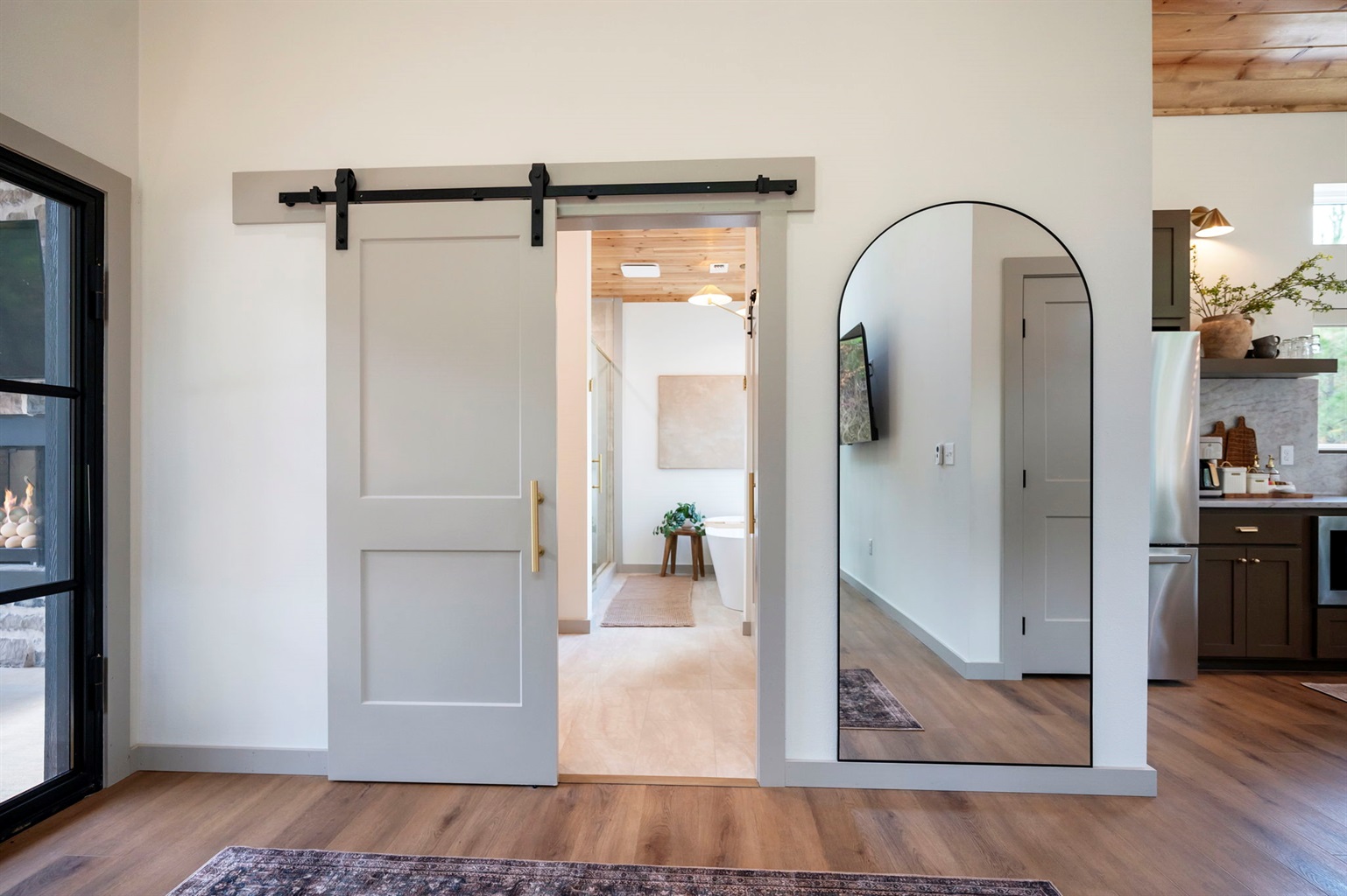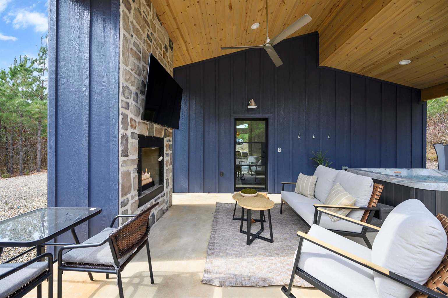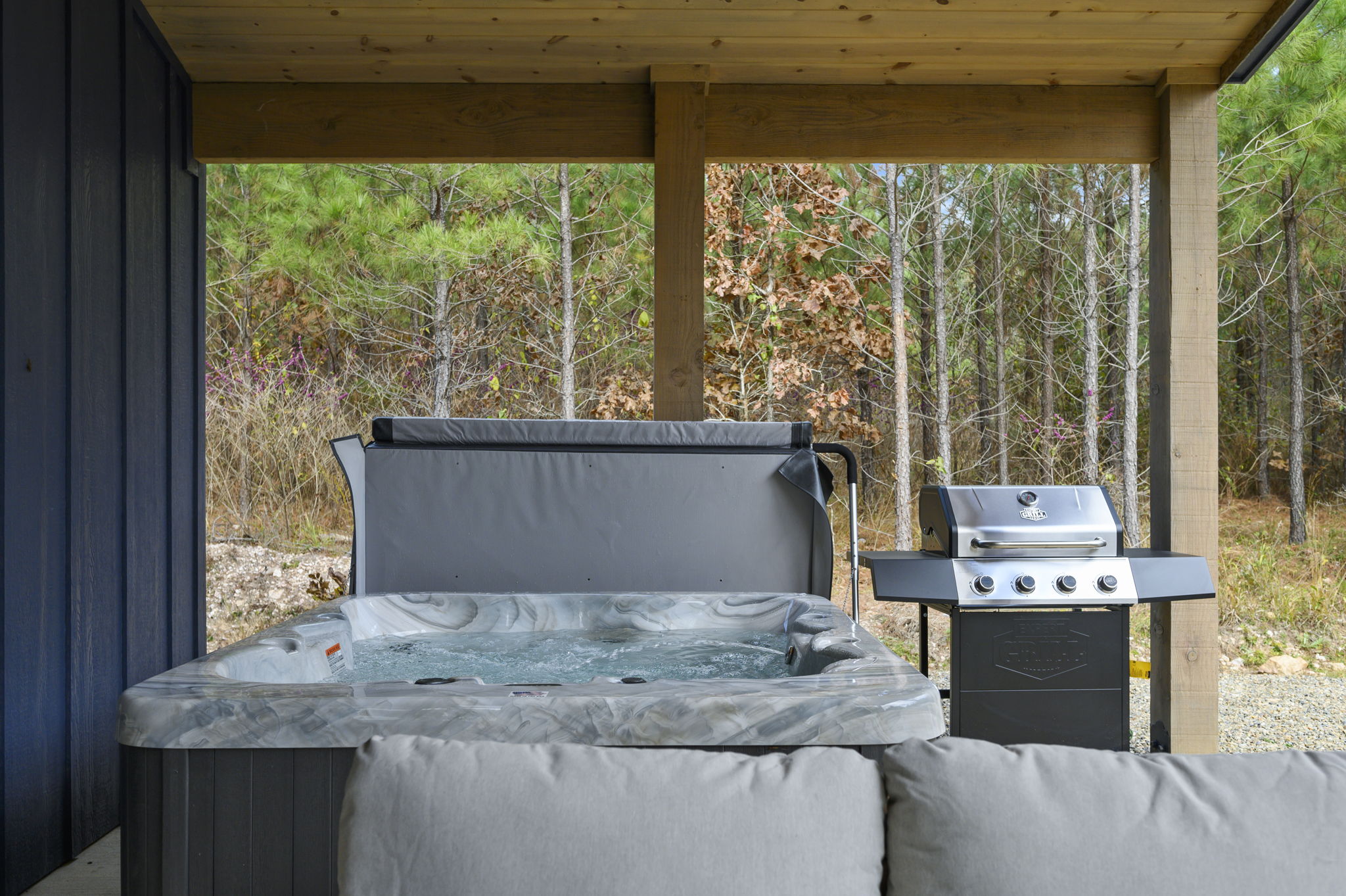 1 Bedroom • 1 Bathroom 1 Bath • Sleeps 2The Spruce at 136, a modern 1-bedroom Broken Bow cabin designed for romantic couples getaways, or solo retreats, and quiet weekends surrounded by nature. Relax in the private hot tub under the stars, cozy up by the indoor/outdoor fireplace, or soak away your cares in the spa-like bathroom with a soaking tub and rainfall shower. Perfectly located near Hochatown, Beavers Bend State Park, Broken Bow Lake, and local dining, wineries, and shops, this cabin is your gateway for an unforgettable escape