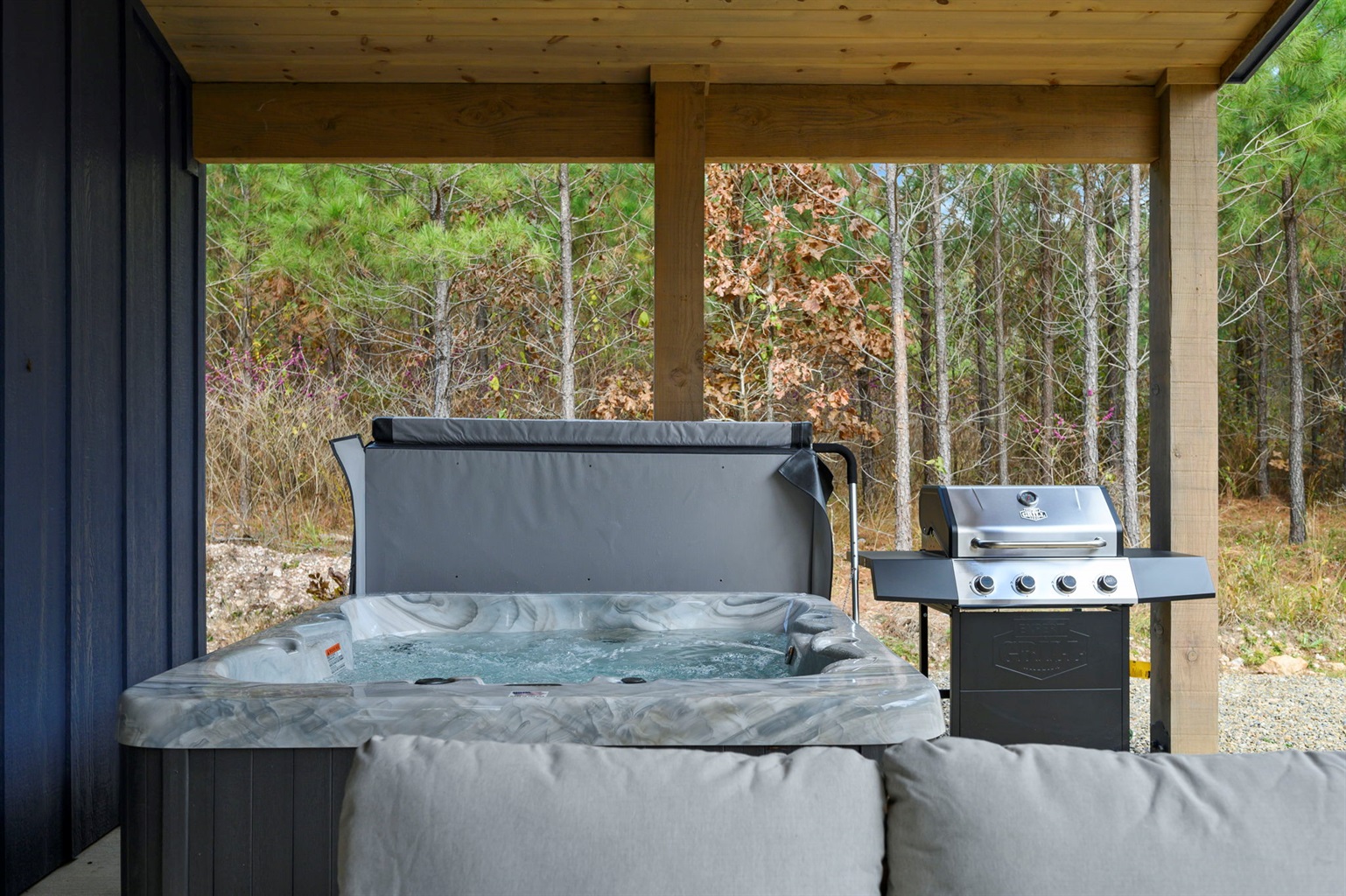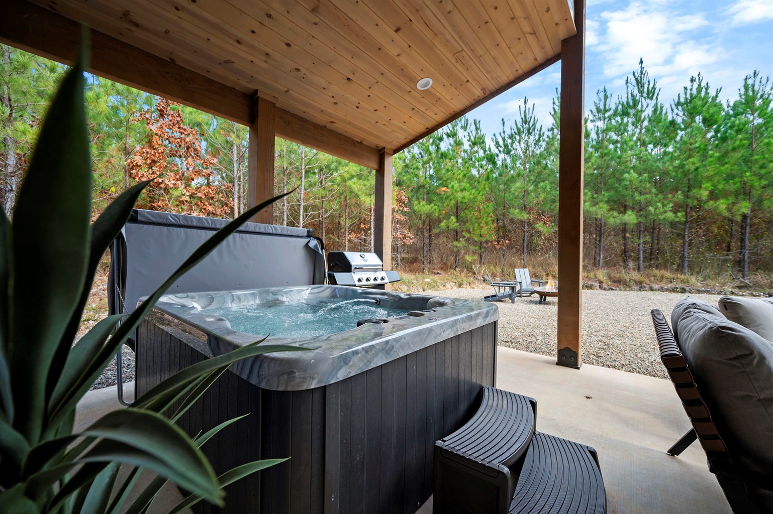 Step outside to embrace nature with a private hot tub, firepit, and spacious deck. Perfect for romantic evenings, morning coffee, or stargazing in peace.